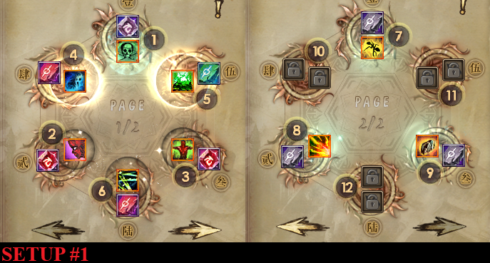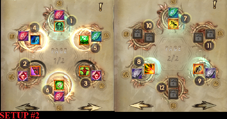 The second setup is a more support-oriented setup. The damage it deals isn’t that great, but it has very easy chi generation, and is the better choice for people that just started out on the class and don’t have enough gear to properly DD. This is the preferred build for HYBRID MAG/VIT and FULL VIT build variants.