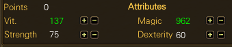 VIT/MAG Hybrid: 3MAG, 1VIT, 1STR every level, until you reach 60 STR. After which you will swap to 3MAG 2VIT.