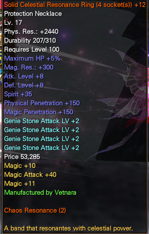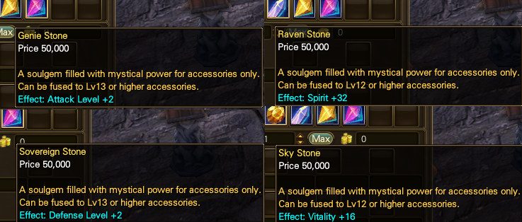 For accessories (Belt, Necklace) You have 4 options. If you’re going with the FULL DPS/MAG Build, you’ll want Genie Stones. These grant ATT LV and massively boost your damage.