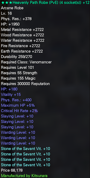 For armour pieces, you have 3 options. If you’re just starting out on the class, I recommend you use either Savant Stones, as those will grant you +10VIT. This will help a lot early-game, when you don’t have your passives yet, making you able to survive much easier. This build is recommended for people that are new to Veno, aren’t sure if they’ll want to invest more into the class, and/or just getting started with the game, as it’s by far the least expensive option. Recommended build variation for this is the VIT/MAG Hybrid.