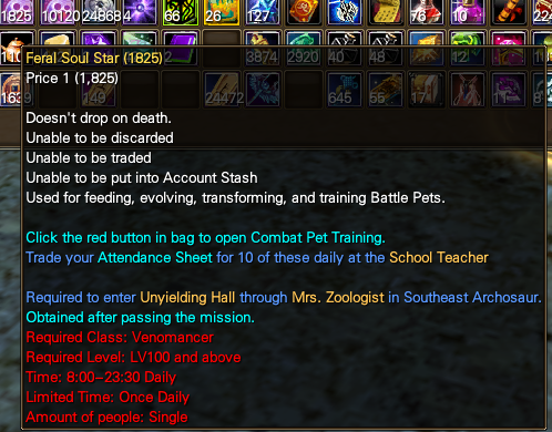 Disregard the text, as that’s not imporant. What you need to pay attention to is the way these work. You get Feral Soul Star Fragments (which are tradable) from MM1 boxes or by buying them from players. These are very inexpensive and only useful for Venomancer, so people tend to not even pick them up, making them available in massive quantities.