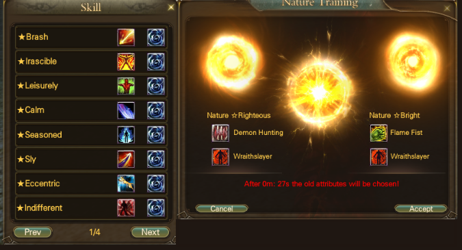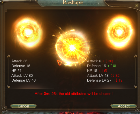 Once a pet is evolved, you will be able to roll it’s stats, independently of the base stats it has, as well as the mood. The current (old) stats are displayed on the left, and the new stats are displayed on the rightside. If you prefer the old stats, you can cancel. If you prefer the new ones, you can Accept. Same deal as Mood training, can reroll as many times as you want. Each roll costs Feral Stars, even if you accept or not.